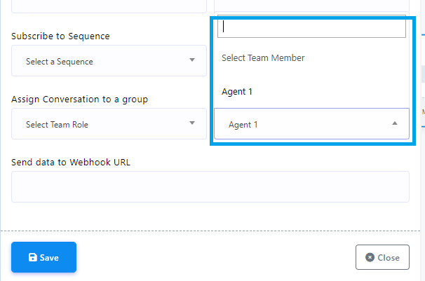- If needed, you can assign a conversation to a specific user by selecting `Start Bot Flow`> `Assign Conversation To A User`. This assigns an agent to the conversation who will communicate with the user when `Chat With Human` is clicked by subscribers.